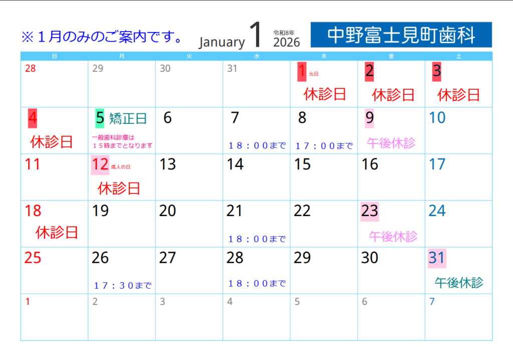 本年も中野富士見町歯科をどうぞよろしくお願い申し上げます。
